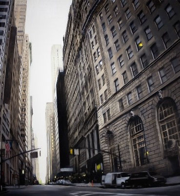 그림 속의 동물들은 모두 용맹스럽고 화려하다. 가죽은 매끈하게 반들거리고, 갈기는 하늘로 뻗쳐있으며, 깃털은 현란하다. 그러나 뿔은 과장되고, 눈은 튀어나올 듯이 선명하게 부각되어 공포와 슬픔을 자아내고 있다. 동물들과 나란히 배치되어 있는 건물들이 있는 곳은 뉴욕의 월 스트리트다. 해뜨기 전 월가는 인적이 드물고 거리는 황량하지만 여명으로 오히려 찬란하다.